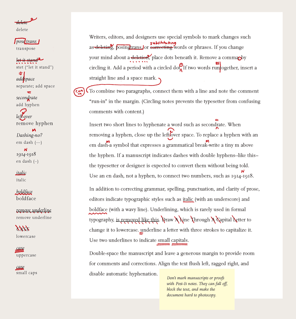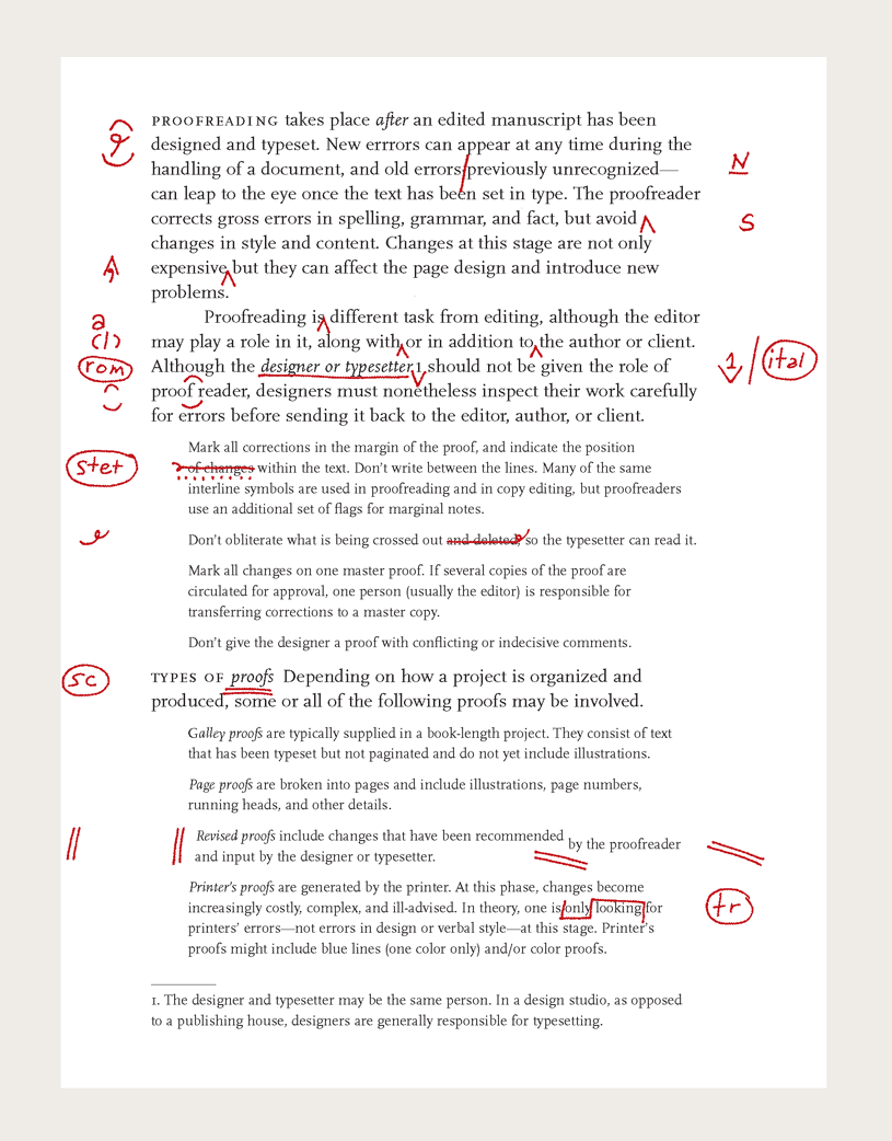 Since the onslaught of desktop publishing back in the dark days of the mid-1980s, graphic designers have taken on roles formerly occupied by distinct trades, such as typesetting and mechanical pasteup. Designers are often expected to be editors as well. Every project should have a true editor, a person with the training and disposition to judge the correctness, accuracy, and consistency of written content. Neither a project’s author nor its designer should be its editor, who is rightly a neutral party between them. If a project team includes no properly trained editor, try to find one. If that fails, make sure that someone is responsible for this crucial role, for the failure to edit carefully is the source of costly and embarrassing errors.