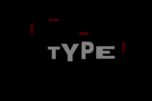 HOW TO PLAY: Shown here is a machine for distorting type. As the letters get hit by the evil sprites, they become distorted in the horizontal or vertical direction, yielding effects that are arbitrary, monstrous, and sometimes beautiful.