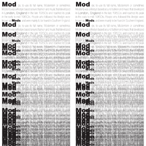 Extreme leading and other effects are used to create an image of Helvetica linked to the "mod" culture of the 1960s.