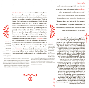 This book folds out into a giant poster. The content blocks are Wikipedia topics that link back to typography. |