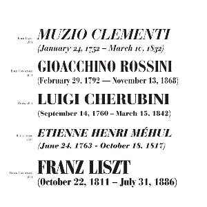Music and literature from the Romantic period provide subject matter for this specimen of the classic/romantic font Bodoni. |